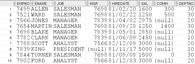 EMP 테이블을 복사해서 예시를 들면서 쿼리를 작성해 보겠습니다.