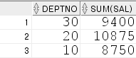 SELECT DEPTNO, SUM(SAL)