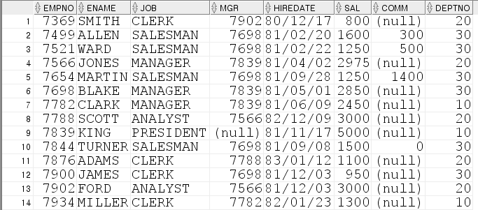 위는 scott 테이블에서 모든 레코드를 검색하는 SELECT문입니다.