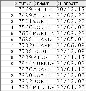 예를 들어 모든 데이터까지는 필요가 없고 사원번호, 사원명 입사일에 대한 데이터를 알고 싶으면 아래와 같이 쿼리문을 실행해 주시면 됩니다.