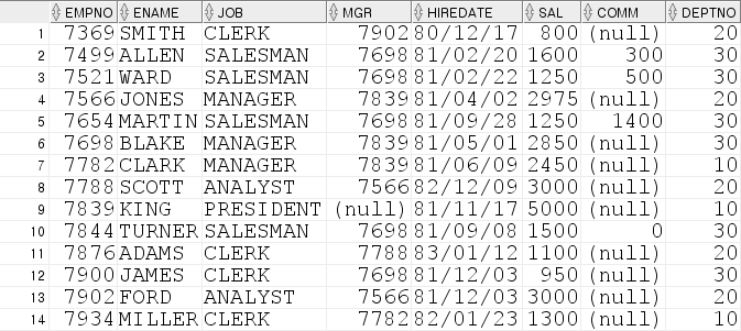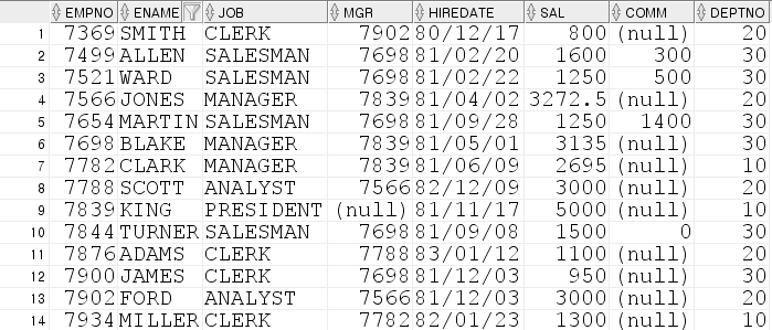 EMP 테이블을 EMP_TEST 테이블에 복사해서 예시 쿼리를 보여드리겠습니다.