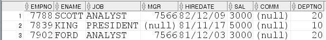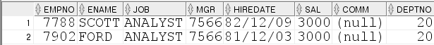 급여가 3000 인 직원의 데이터를 출력한다고 하면